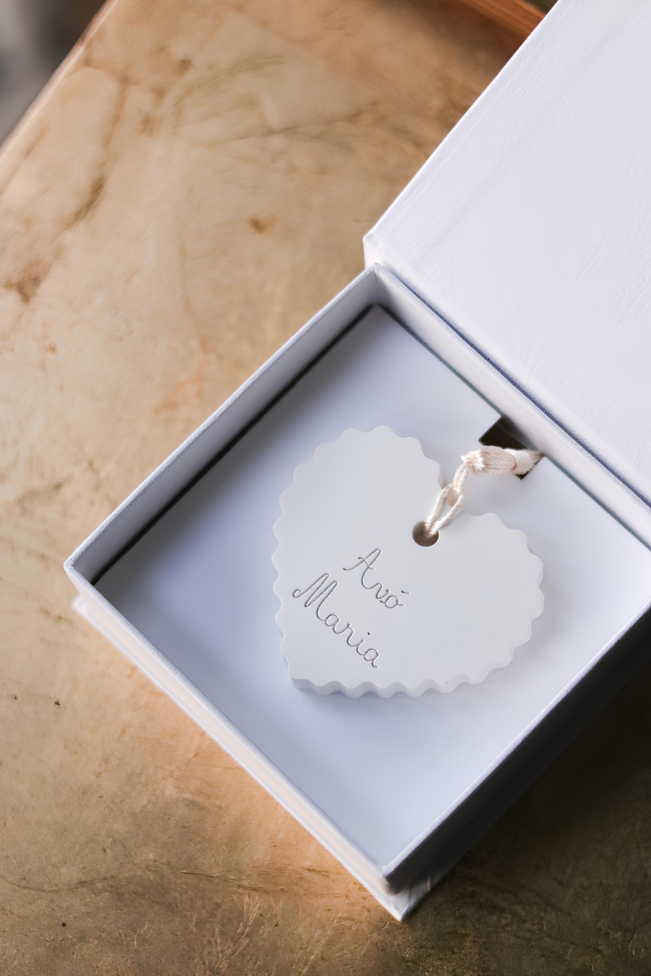 Peça em gesso perfumado personalizada com o nome pretendido.