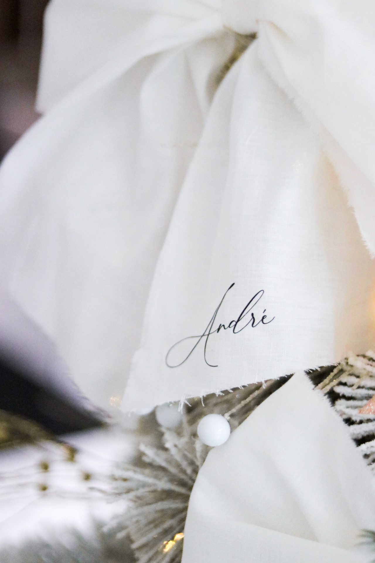 Laço em tecido com nome 13,00 € Desconto de %. IVA incluído. Partilhar Personalização nome do laço Comprar Contactar Laço em tecido com nome estampado a preto com argola para pendurar na árvore de Natal. Personalize com o nome. Tags Natal#prendanatal#prendapersonalizada#ideianatal#natalprenda#arvoredenatal#pendentepersonalizado#pendentearvore